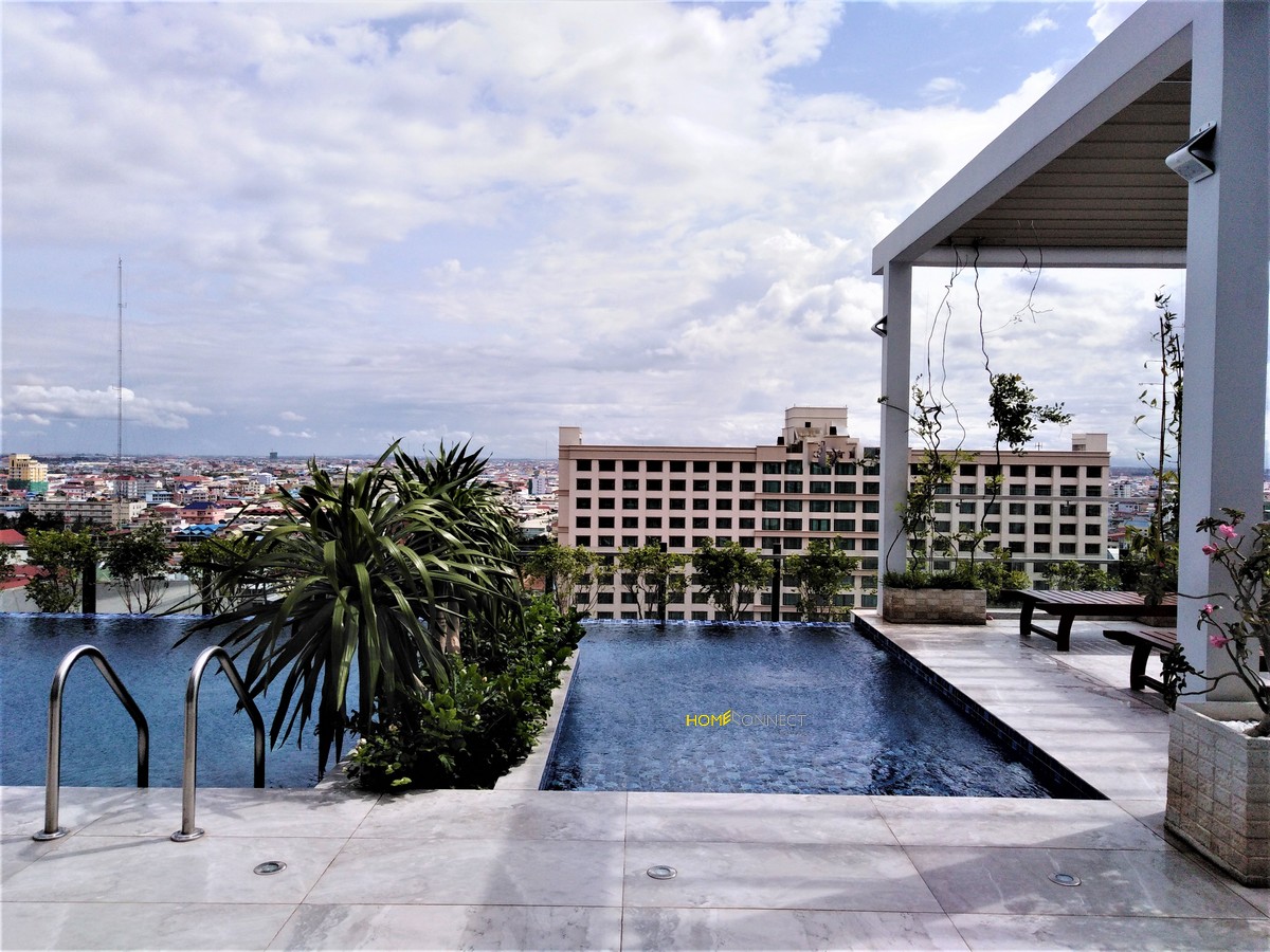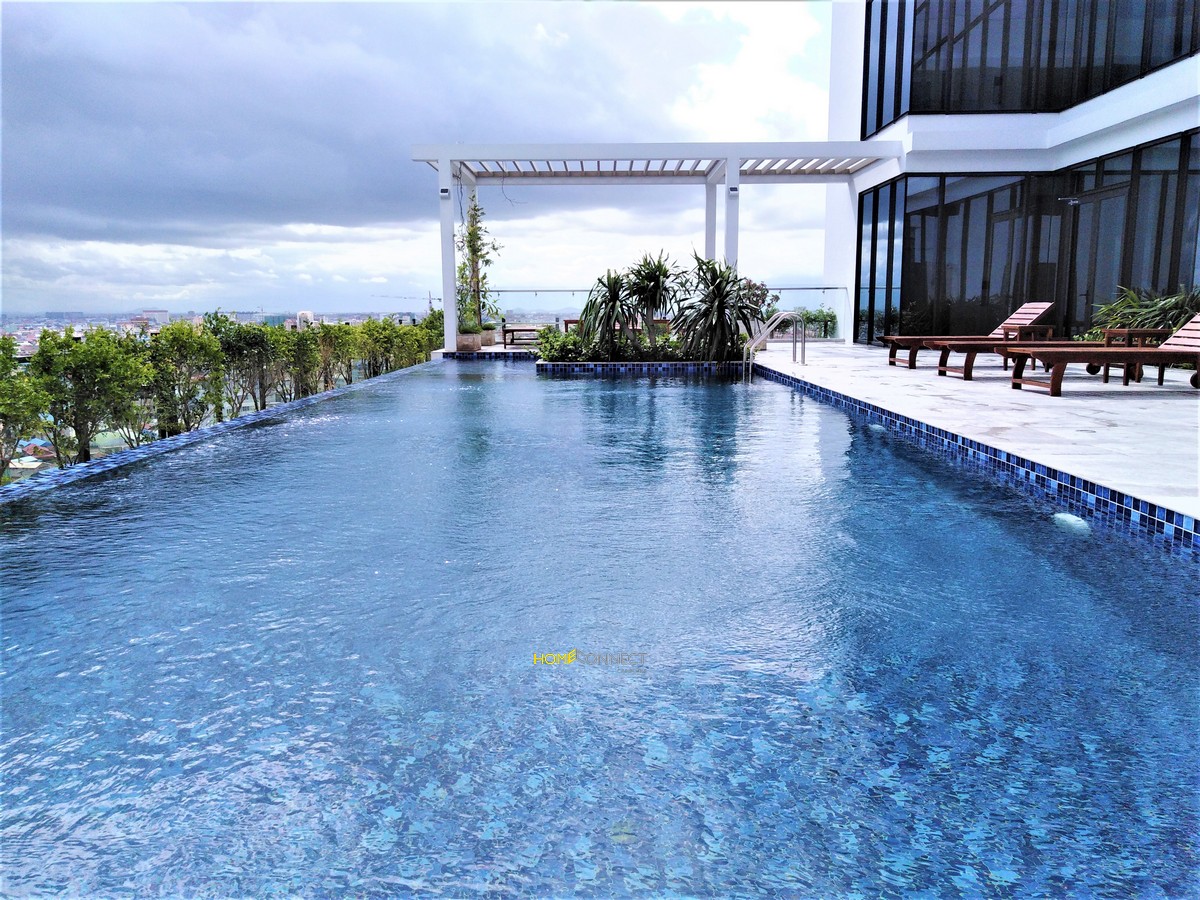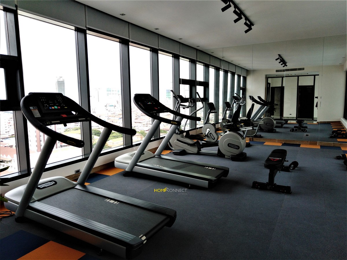 Brand new building on a quite street with no construction. Fully furnished with everything you will need. Cleaning twice a week and changing the linens twice a month. CCTV and around the clock security to insure your safety. Roof top pool and gym with great views of the city skyline while you work out or relaxing by the pool. Olympic stadium is just a short walk with the city mall, lucky super market, restaurants, Zando, Olympic Market. Five Minutes to the Russian Market and just a few more to BKK1. The Price is a special due to the grand opening of the building.