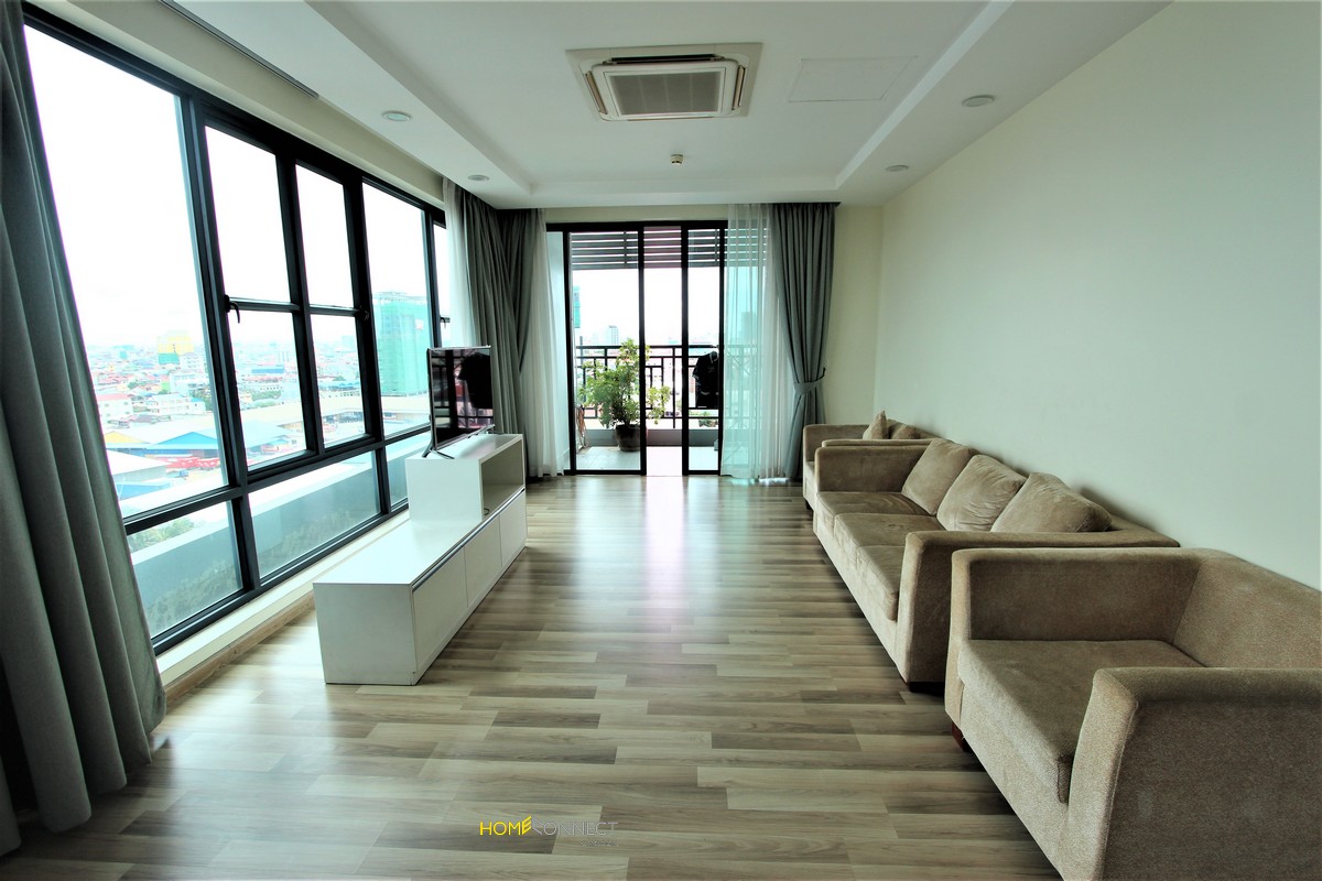 Modern two bed room near the very popular Russian Market. There you have local shops, coffee shops, restaurants, marts, school. Very central to all the amenities you want or need. The building is very secure with 24hr security, cctv, card key entrance. Each room have its own balcony and en suite bathroom. Everything you need will be included in the apartment, from kitchenware, washing machine, tv (in each room and one in the living room). There is a pool, gym, steam, sauna, hot and cold pool to relax after a work out